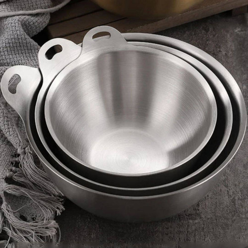 کاسه دو دسته استیل نقره ای در ۴ سایز