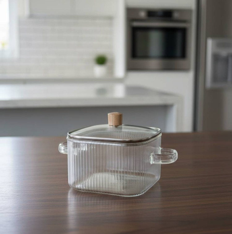 قابلمه پیرکس مربع مدل راهراه با طراحی شیک و بدنه شیشهای نسوز، گزینهای ایدهآل برای آشپزی سالم و مدرن است. شیشه پیرکس مقاوم در برابر حرارت بالا بوده و بدون واکنش با غذا، طعم و کیفیت مواد غذایی را حفظ میکند. طراحی راهراه علاوه بر زیبایی، باعث پخش یکنواختتر حرارت و استحکام بیشتر بدنه میشود.