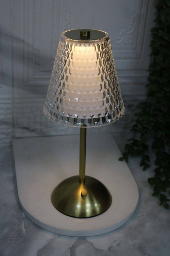 این آباژور رومیزی با شید شفاف طرح الماسی، نور را بهنرمی پخش میکند و فضایی گرم و دلنشین میسازد. پایه فلزی طلایی، ظاهر محصول را شیک و مدرن کرده و آن را به انتخابی مناسب برای میز کنار تخت، میز کار یا دکور پذیرایی تبدیل میکند. طراحی ساده اما خاص، استفاده راحت و جلوهای لوکس از ویژگیهای اصلی این چراغ رومیزی است.