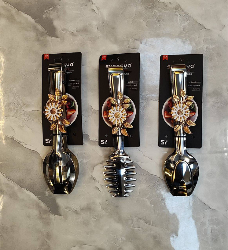 ست انبر سرو استیل طرح گل یک مجموعه کاربردی و شیک برای سرو انواع غذا در منزل، مهمانی و رستوران است. این ست شامل انبر سالاد، انبر پاستا و انبر شیاردار بوده و برای جابهجایی و سرو غذا بدون تماس دست کاملاً ایدهآل میباشد.