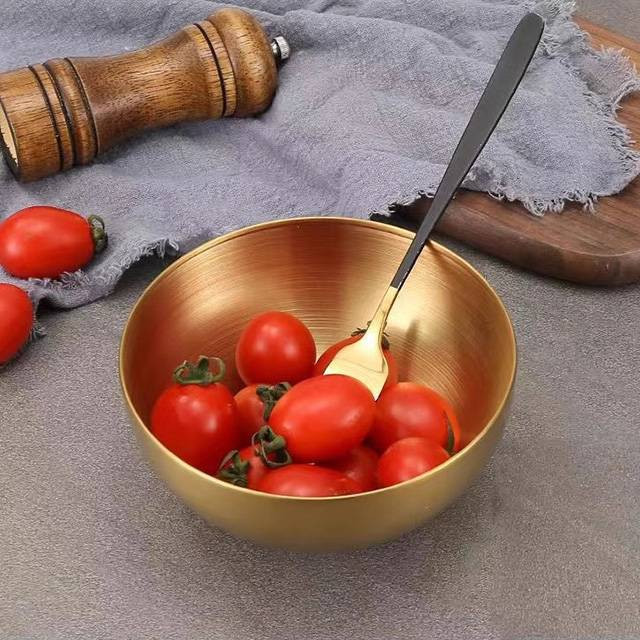 کاسه گرد استیل طلایی یک کاسه مناسب برای سرو میوه، انواع سالاد، غذاهای شرقی و ایتالیایی و ... می باشد. این کاسه به علت استیل بودن جنس بدنه، ضد زنگ و با دوام است و جای نگرانی برای ضربه خوردن باقی نمیگذارد.