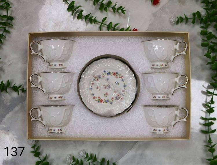 این سرویس قهوهخوری گلدار با طراحی ظریف و نقشونگارهای چشمنواز، انتخابی شیک برای پذیراییهای خاص شماست. حاشیههای طلایی کار شده روی لبه فنجان، دسته و نعلبکی جلوهای لوکس و کلاسیک به این ست بخشیده است. ترکیب گلهای ظریف با خطوط طلایی، حس اصالت و زیبایی را به میز پذیرایی شما میآورد.