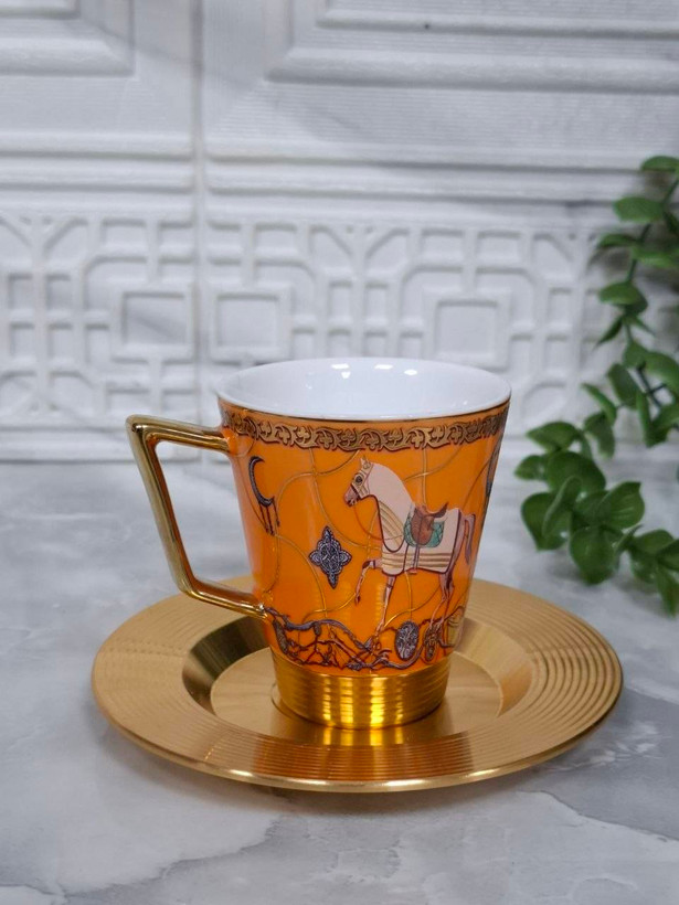 الهامگرفته از شکوه برند افسانهای Hermès و نماد اصیل اسب، این سرویس ترکیبی از قدرت، ظرافت و تجمل را یکجا جمع کرده است. نقش اسب با جزئیات خاص روی فنجان، در کنار دسته و نعلبکی طلایی براق، یه هارمونی خفن و چشمگیر ساخته که هر کسی رو میخکوب میکند.