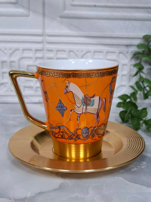الهامگرفته از اصالت و شکوه برند لوکس Hermès، این ست چایخوری با نقش اسب نمادین هرمس، ترکیبی از ظرافت کلاسیک و جذابیت مدرن رو به نمایش میذاره. اسب در هویت هرمس نماد قدرت، نجابت و اصالته — و حالا این مفهوم توی یک ست چشمنواز برای پذیرایی شما جان گرفته.