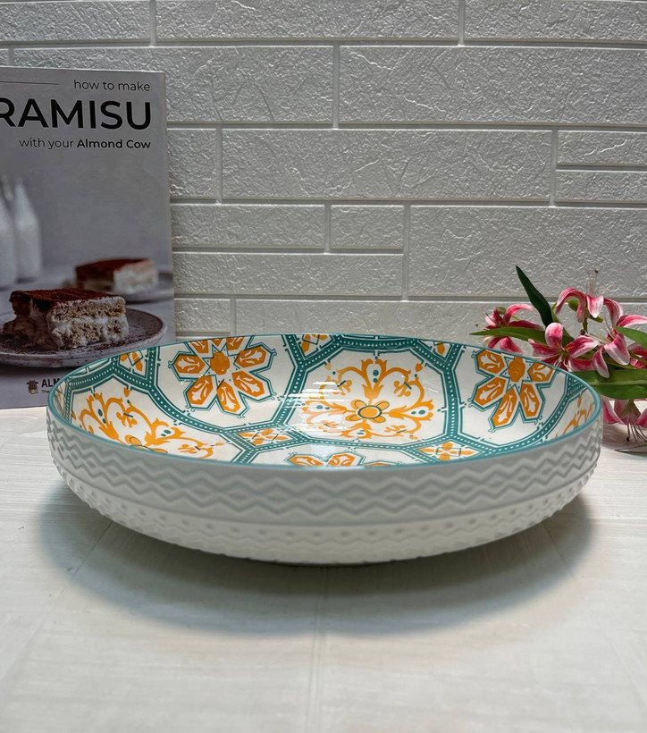 این دیس بهخوبی میتواند انواع غذاهای رنگارنگ، پیشغذاها و حتی دسرهای خوشمزه را در خود جای دهد و به هر مهمانی یا دورهمی جذابیت ویژهای ببخشد.