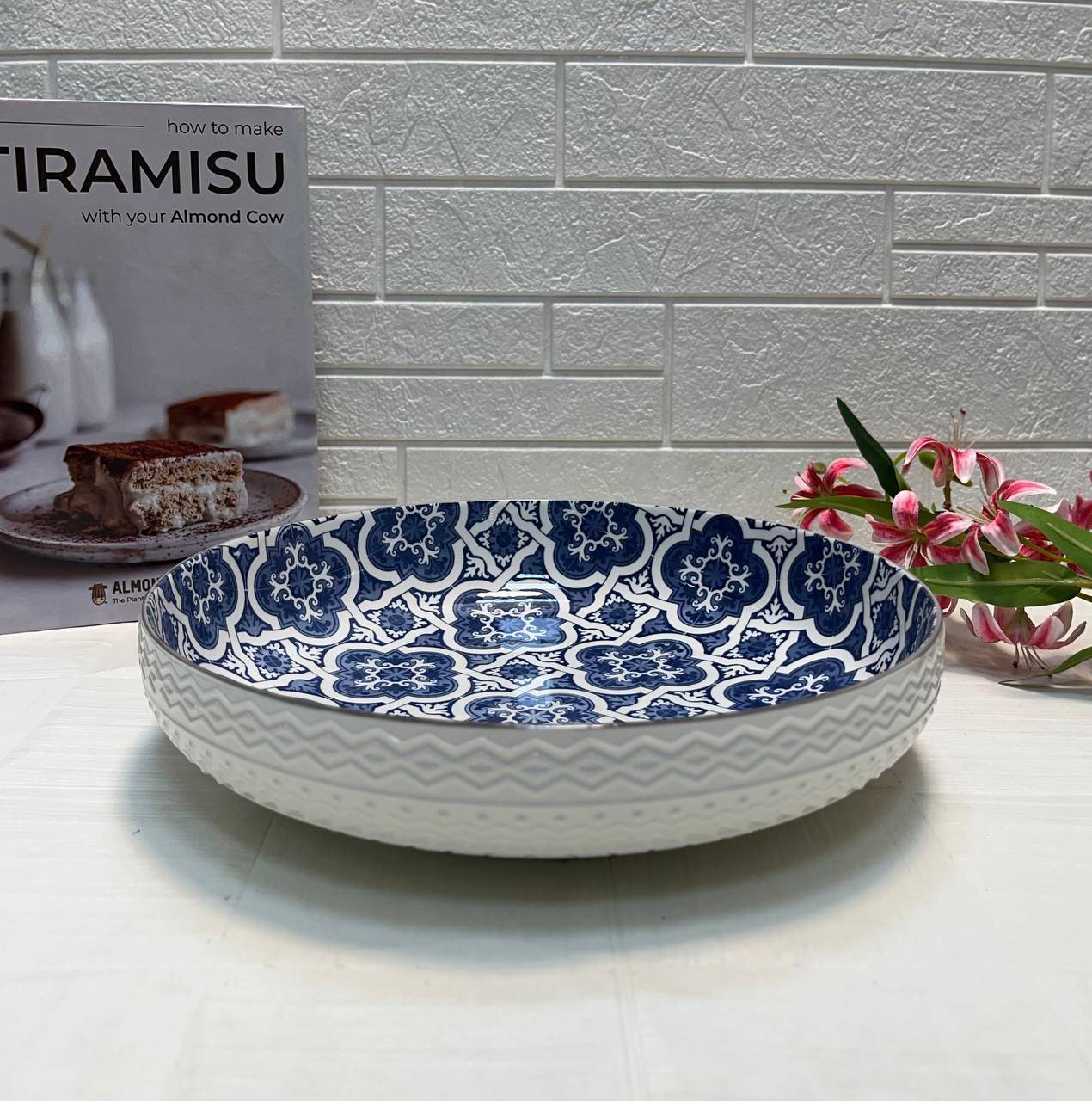 اگر به دنبال طراحی ترکیب مدرن و اصیل و سنتی هستید، دیس گود بزرگ دنیهوم با طرح کاشی سنتی بهترین انتخاب برای شماست. این طرح با الهام از کاشیکاریهای ایرانی، ترکیب رنگهای آبی و سفید را بهطور ماهرانهای در خود جای داده است. این دیس به دلیل طراحی برجسته و خاص خود، نهتنها بهعنوان ظرف غذا، بلکه بهعنوان یک اثر هنری بر روی میز شما میدرخشد.
