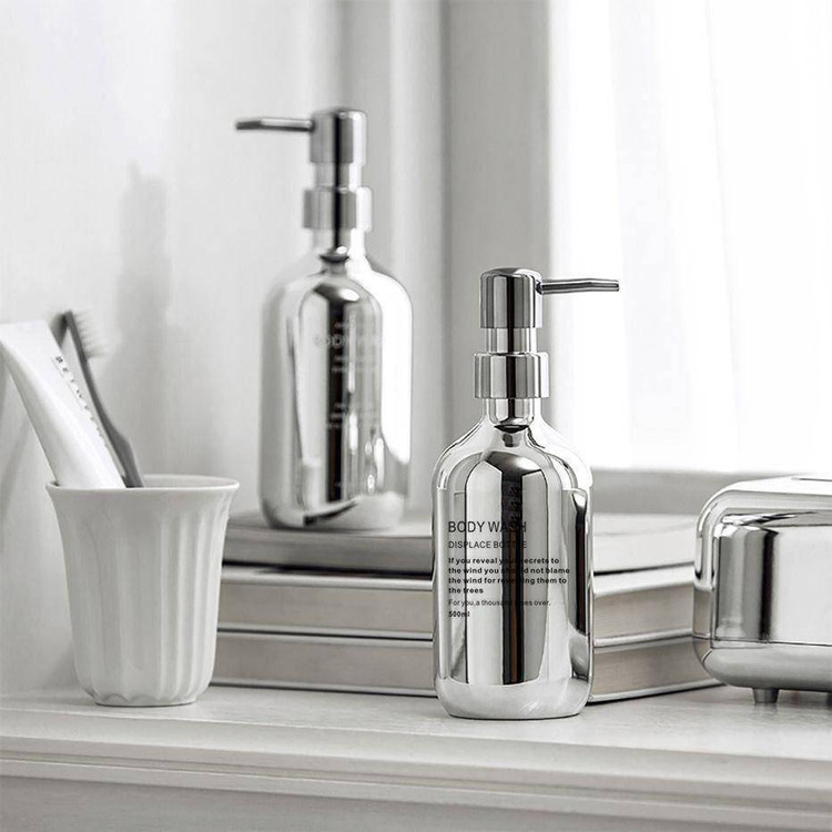 این جا مایع شیشه ای به رنگ نقره ای بوده. خروجی مایع از لوله با فنر هست که درب پمپی فشاری نقره آن زیبایی و شیک بودن جا مایع را دوچندان میکند و بهترین گزینه برای استفاده در آشپزخانه، حمام و سرویس بهداشتی شمایید