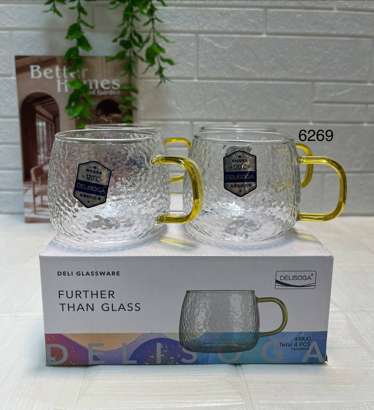 لیوان پیرکس دسته طلایی ست ۴ عددی برند دلی