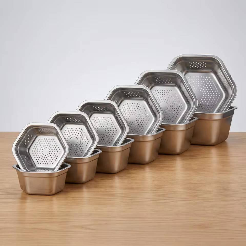 ست آبکش و لگن ۱۰ پار چه استیل شش ضلعی