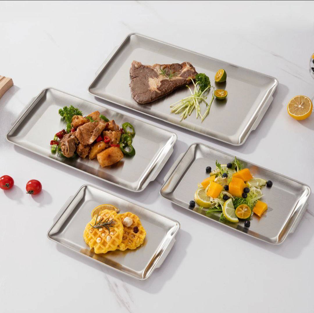 سینی استیل دسته دار در ۴ سایز
