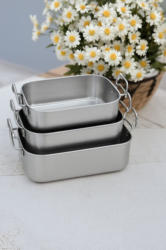 تابه سرو مربع دسته دار طلایی در سه سایز